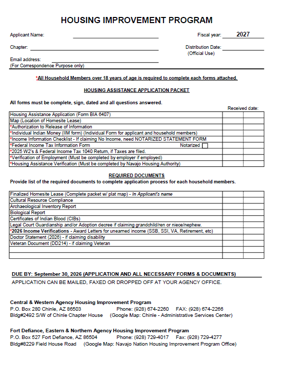 Staff Directory Housing Improvement Program NNCHID General Information Staff Directory HIP Application FY2027